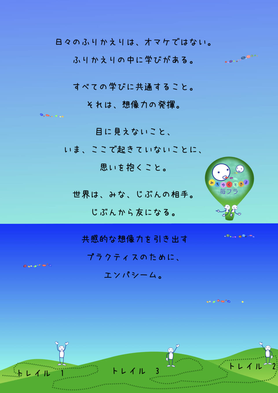 毎プラのチュートリアル動画です。エンパシームアプリを使って「みちゆくときよ」を通しでやってみましょう。どんなふうにするのかな?どんなことを言うのかな?どんなことばを書き入れるのかな?使い方の手順とともに、毎プラを楽しんでいらっしゃる方の実例です。いっしょにする仲間がいるケース、つながりでシェアする事例を紹介します。