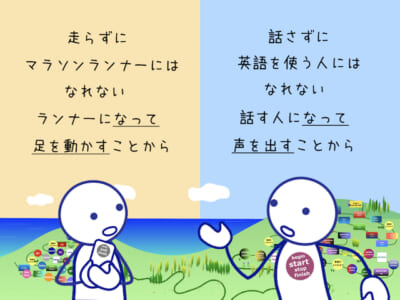 ものごとを身につけるための真髄は「痛み」です。じぶんでやってみて、失敗を「肌身で感じて」深くしっかり身につけられるのです。たとえば、英語の学習。話そうとするから、話す人になれるのです。「走らないマラソンランナー」はいないのと同じこと。うまくいかないという、微かな、失敗の痛み。その体感こそが、プラクティスの真髄です。