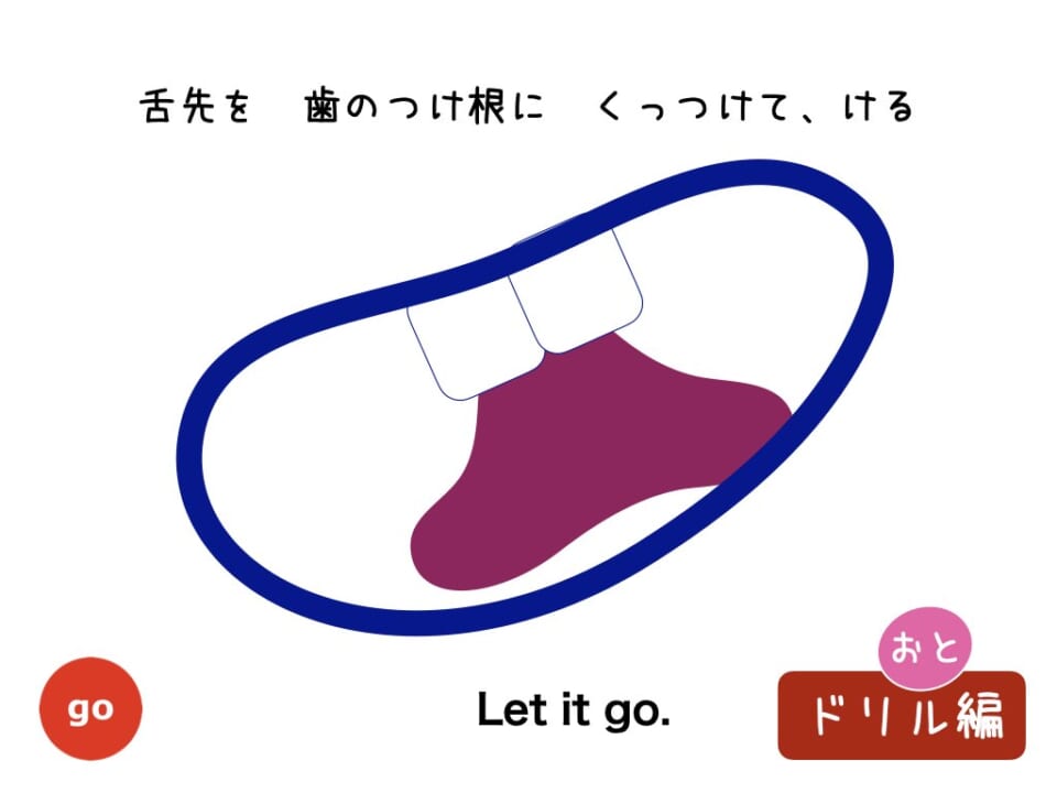 💧 舌先をくっつけると、カナモジ音とちがう音になる。