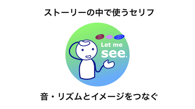 ストーリーの中でセリフを使って、音・リズムとイメージを結びつけましょう。