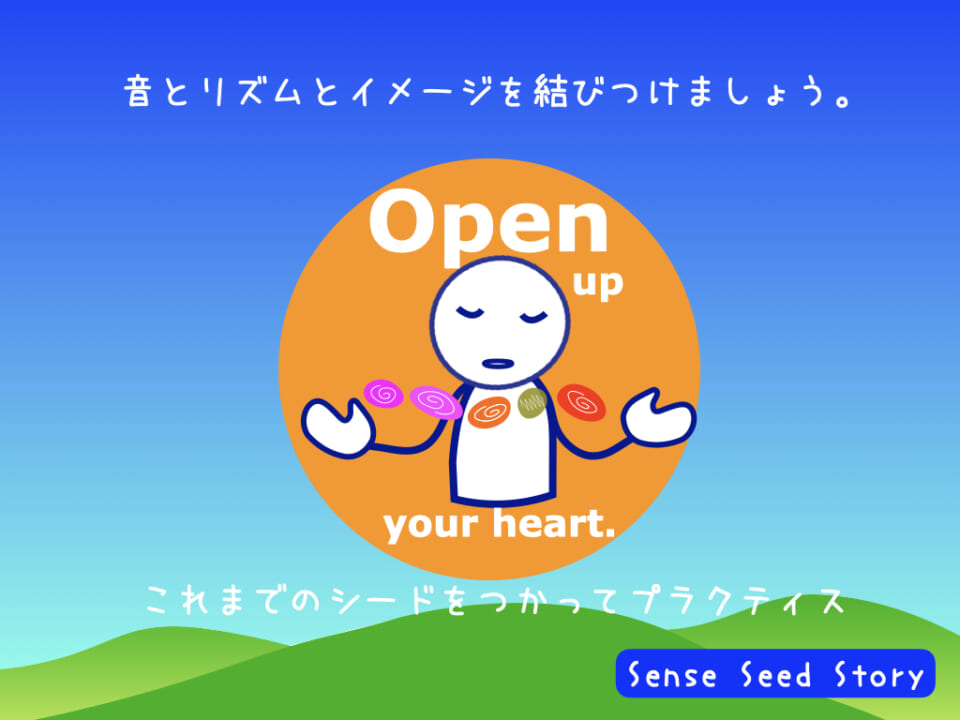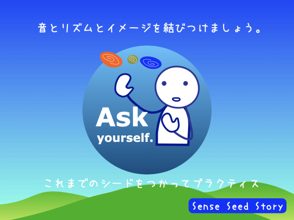 センスシードを使って、ひとつ対話をつくります。音とリズムをイメージを結びつけましょう。
