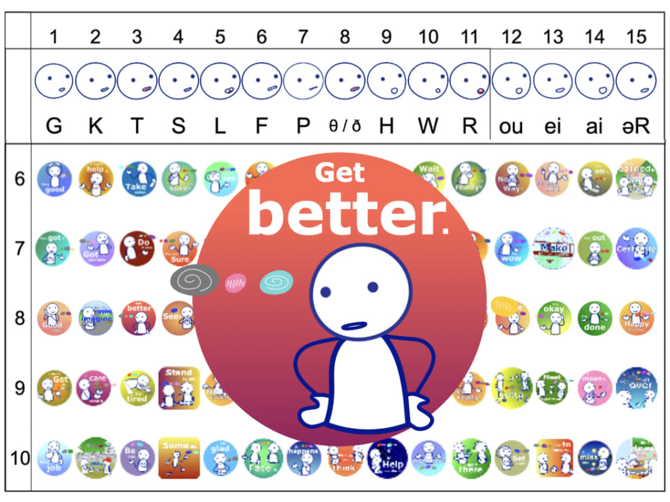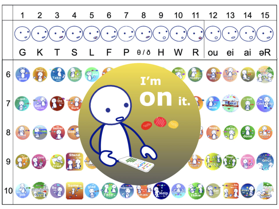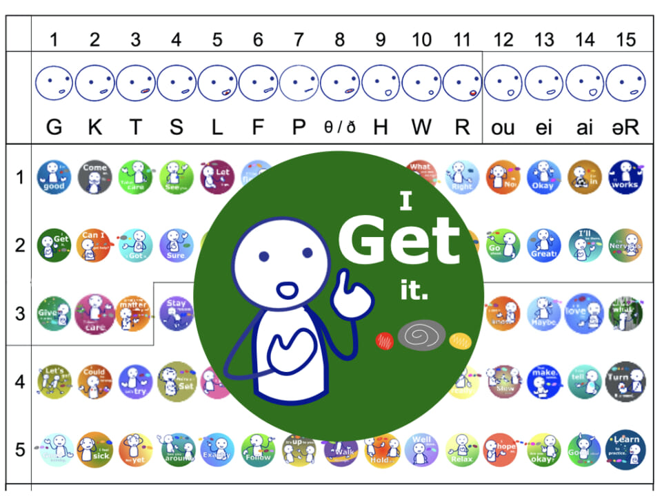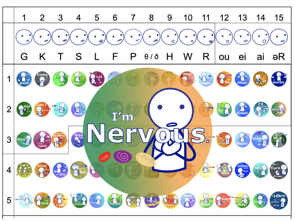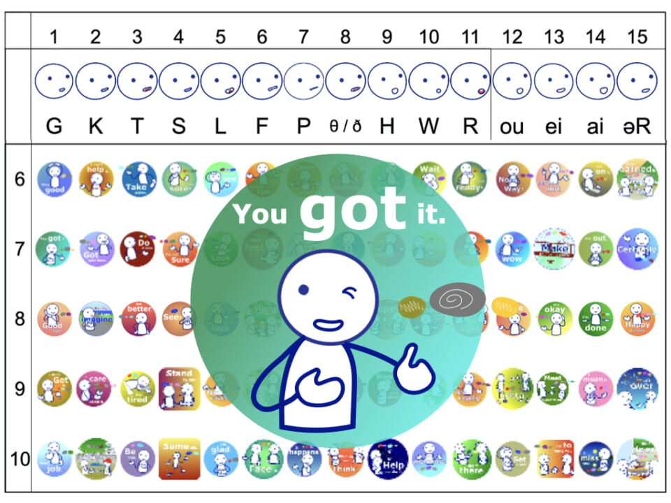 音・リズムと表現のセンスを身につけるためのスタンプシードを使った、miniルーティンプラクティスの全体像。150のセリフが、縦(道筋にそった音の系列 x 横 (頻度・応用度の高い表現)で構成されます。身ぶり・手ぶり、情景の絵図、手本シード音声、円符(音の視覚イメージ)を組み合わせた画期的なツール、2周目です。