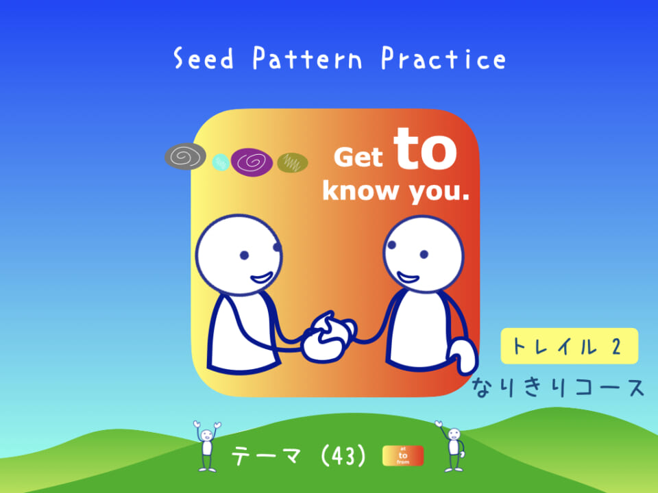 トレイル 2のテーマSeedを使ってやりとりの場を想像するプラクティス。挿絵にある情景、身振り手振りの空間をイメージしてみましょう。セリフをアウトプットしながら想像することでセンスが身についていきます。いっしょにやって、想像をはたらかせてみましょう。そのあとでエンパレットのツボノートをみて復習しましょう。