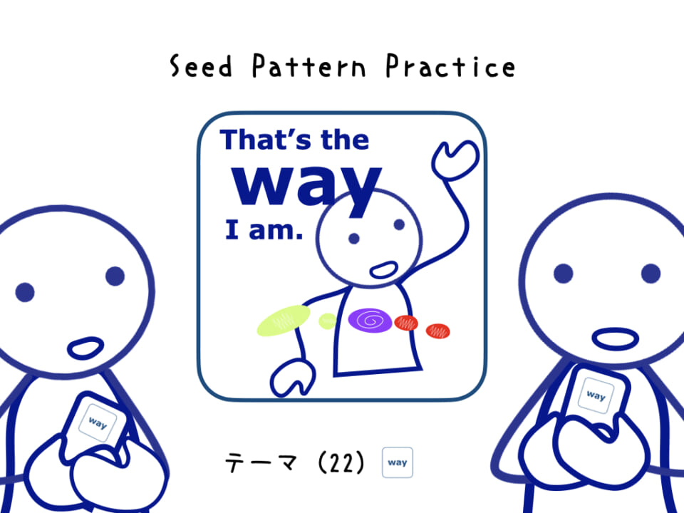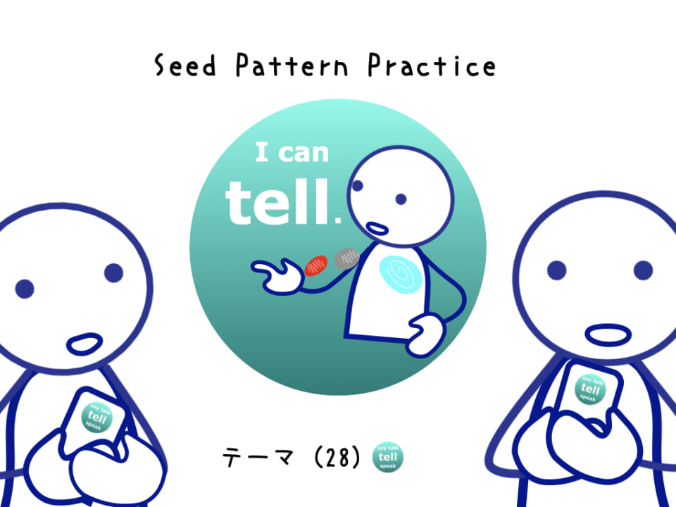 トレイル 1のテーマSeedを使ってやりとりの場を想像するプラクティス。挿絵にある情景、身振り手振りの空間をイメージしてみましょう。思い出せない、うまく言えないことも大切なプラクティスです。あとで見直して、あーこれだったな、と思い出します。そのように、じぶんからアウトプットすることで、セリフのつながり感が身につきます。