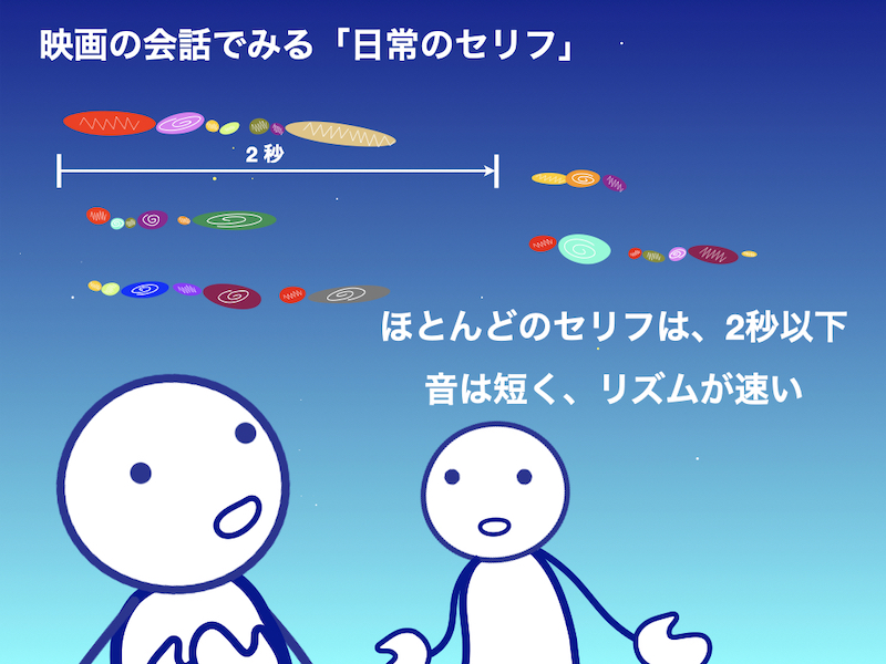 すべてに通じるカギ。それは「2秒のセリフ」のプラクティス単位です。何をどれだけプラクティスするのかを、ふりかえり、自覚できなければ努力が報われません。私たちは、吐く息にのせて話します。日常会話の発話の9割、ほとんどのセリフは2秒以内です。発話の現実にもとづいて「くりかえし・ふりかえり・わかちあう」ことが最大のカギです。