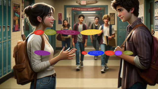 ことばは、音。相手のセリフとじぶんのセリフ。情景イメージを思い浮かべて、リズムミラーでプラクティス。文字を読解するとか、音読練習とか、ではなくて、本当にこんな場面にあなたがいることを想像して、セリフを言ってみてください。英語が何百倍も身近になります。ひとつひとつのセリフをプラクティスが楽しくなれば、もう上達しています。