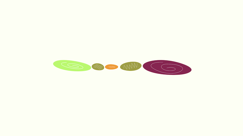 What makes you so happy? 音節符(色粒)のリズムにあわせて言ってみましょう。 はじめは…