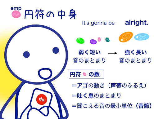 円符 (Emp)は、形、大きさ、色、模様、連なりで、声の身体運動が見えるように、数えられるようにして、楽しくプラクティスをするためのツールです。