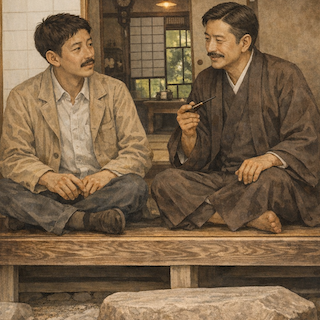 寺田寅彦は、漱石先生に会って話していると心の重荷が軽くなり、その存在そのものが心の糧であり薬であったと回想しています。漱石との対話に常にインスパイアされていた様子がうかがえます。ひらめきは、どこかから突然やって来るものでも、一方的に与えられるものでもなく、心のふれあいの中で相手にも自分にも生まれてくる相互作用なのです。