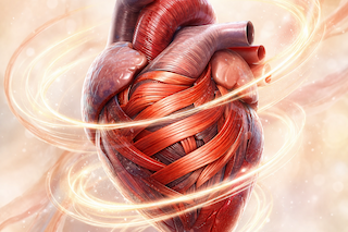 血液を送り出す機能だけを言えばポンプに見える。私たちはそのように教わってきました。しかし、それは心臓の本質ではありません。単なる押し出しポンプではないのです。ねじれ、ほどけ、しぼり、ゆるみながら動く。筋肉全体が雑巾を絞るような、らせん運動で血液を流します。しかも、血管内で渦をつくりながら流れ、効率を高めているのです。
