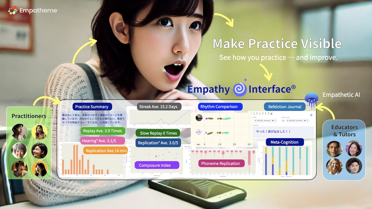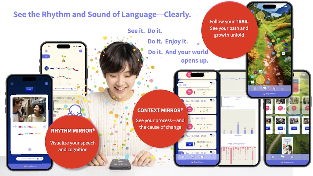 Our principal technology is the Empatheme🌀 Interface®, a human–AI co-creative practice system centered on the patented Hearing Mirror®, Rhythm Mirror®, and Context Mirror®. These components are seamlessly integrated within a unified Journal–Dashboard platform, providing comprehensive visualization and support for human practice.
