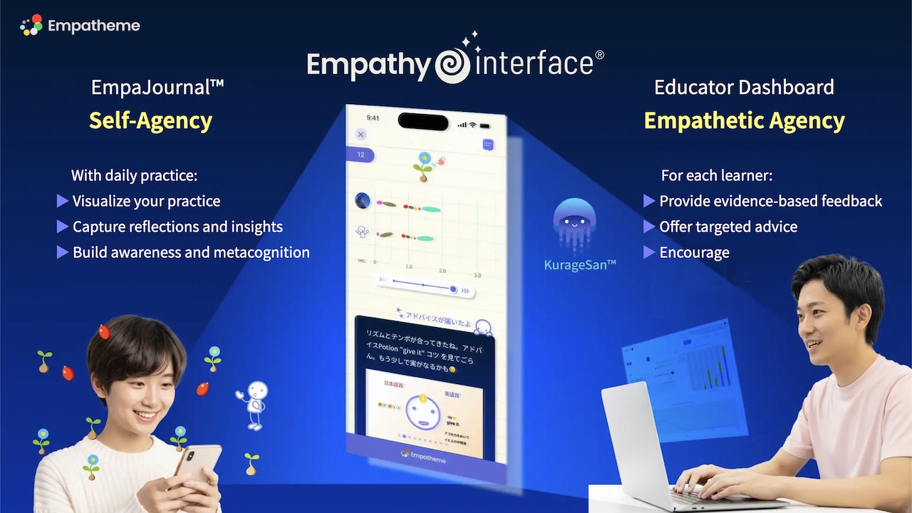The Empathy Interface® integrates the English Ear° Trail® app and Educator Dashboard into a unified, co-creative system. Leveraging the Context Feedback IP, the platform captures both learner interactions and educator responses as structured contextual signals. This architecture operationally links the Empa-Journal™ (learner’s practice field) with the dashboard (observation and guidance interface), enabling continuous system-level integration of self-agency and empathetic agency throughout the learning process.