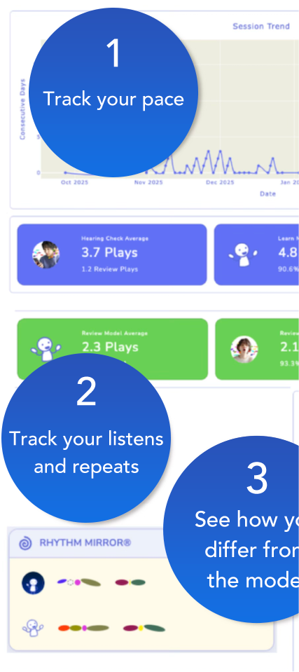 Reproduce both the model voice and your own voice using the Rhythm Mirror®.