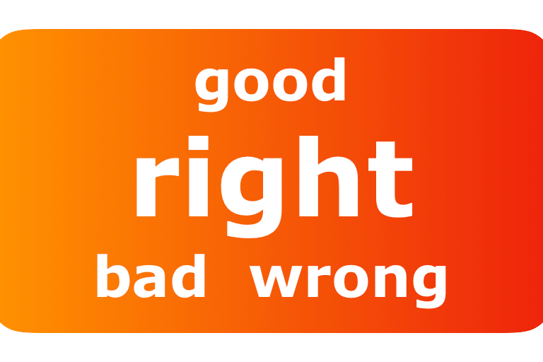 goodは、ものごとや状況がよいこと。badはその反対。right は、ものごとがあっている、そのとおりであること。 wrongはその反対。