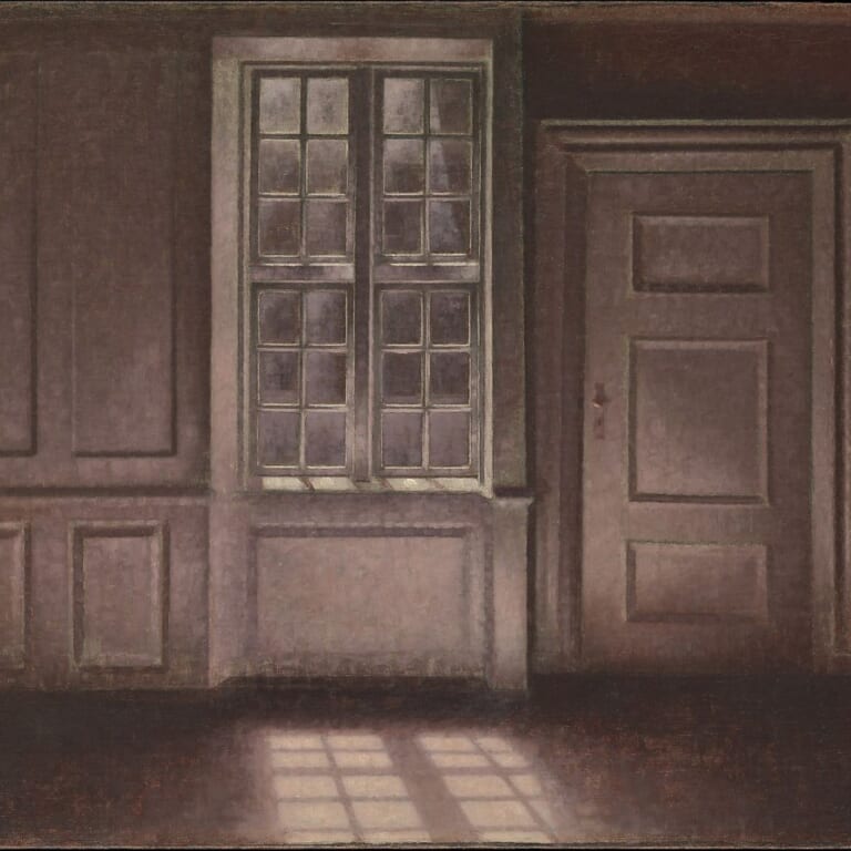 デンマークの画家ヴィルヘルム・ハマスホイの絵。静謐のじかん以外、なにもない場。とびらが静謐なのではなく、それが感じられる時だけ、心が静謐になるのです。だから、いま、見ているあなたの心が映っているのです。Less is more. Less(それ以外は何もない)を深めると、more (それしかないもの)が引き立ちます。