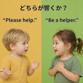 Don’t cheat.(ウソをつくな)よりも、Don’t be a cheater.(ウソつきになるな)名詞形の方が効果があります。心の習慣は、どうありたいか、という方向づけが大切です。どんな行いをする人になりたいか、そのことばで決まります。3歳の時から、私たちはそのようにしているのです。