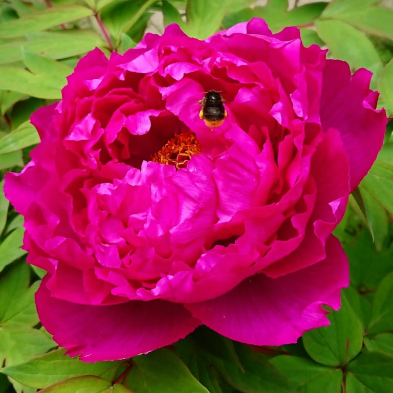 フラワーアーティストのウジさんは言います。「花屋というのは店の花を捨てるんです。売れない花は、処分せざるを得ませんからね。私はそれがイヤで独立しました。今はお客さまへ直接お届けする花だけを扱う、花ブリエです。」ウジさんから頂いた牡丹に、潜り込む蜂!庭に咲いたのは大きな牡丹。いのちのふれあう空気は、いつも和らいでいる。