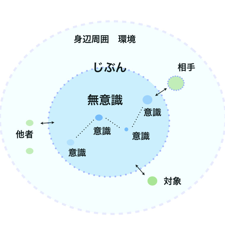 日常のほとんどは「無意識」です。無意識は「意識がない」ことではありません。意識も無意識も、環境と相互に作用しあう身体の働きであり、そのあらわれです。刻々と変化する状態の全部をあわせて「心」と呼びます。エンパシームには、意識と無意識の境目の、身体行為の縁を写し、プラクティスに利用するための「じぶんのピース」です。