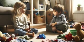 部屋が少し散らかっているようですが、子供たちはやりたいことで気持ちがいっぱいです。