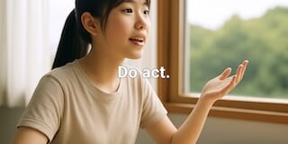相手に語りかける気持ちになること。そのためには、静かな場所にすわり、体の力を抜き、気を楽にします。背筋を伸ばし、顔を上げ、練習した場面とセリフを思い出してください。息を吸って、画像を見て、思い切り、声を放ちます。もちろん、文字に頼らないで、です。