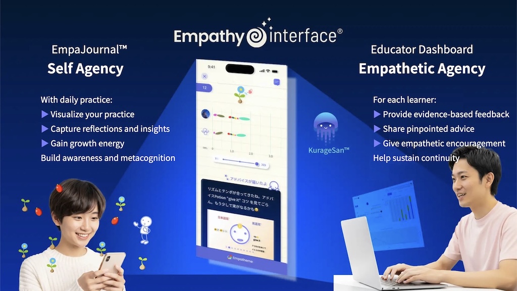 By integrating Empatheme’s practice data with the Context Mirror®, KurageSan® helps create a new learning environment that co-creates self-agency and empathy among learners, Educators, and researchers.